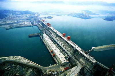 描述:位于湖北的世界上最大的水电站有375英里长的水库,于1994年开始建设,看上去气势磅礴